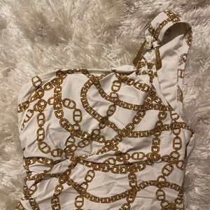 Michael Kors White and Gold Chain Print One Piece Swimsuit