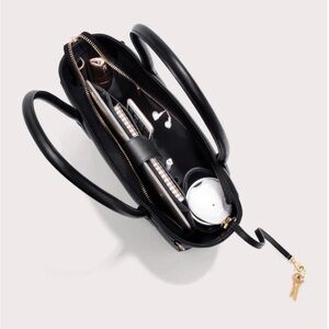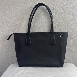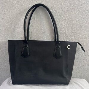 Dagne Dover Black Structured Work Tote Gold Hardware Laptop Bag