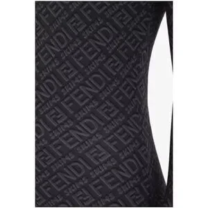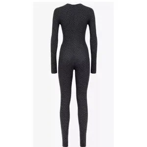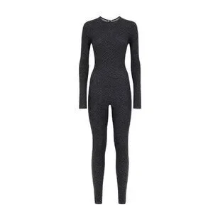 Elevate your style with this Skims Fendi Collaboration grey jumpsuit, featuring a chic allover logo print. Designed for comfort and fashion, it includes a convenient back zipper closure, perfect for any occasion.
