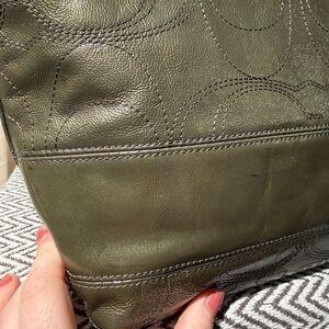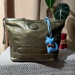 Calling all Coach collectors! This 2010 archival piece is such a unique find. The metallic olive green has a gorgeous sheen that shifts in the light, and the embossed Op Art Signature C pattern gives it that classic, textured Y2K-era Coach look. It’s the perfect blend of (nearly) vintage charm and everyday practicality.