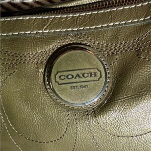 Coach East West Gallery Tote in Metallic Olive Patent Op Art - 2010 - GUC