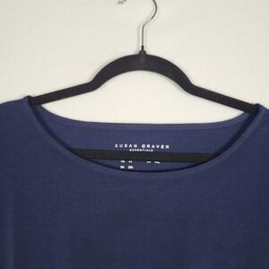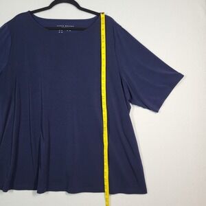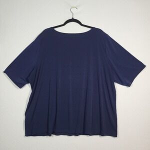 Susan Graver Modern Essentials Liquid Knit Bateau Neck Top 3X Navy Short Sleeve
