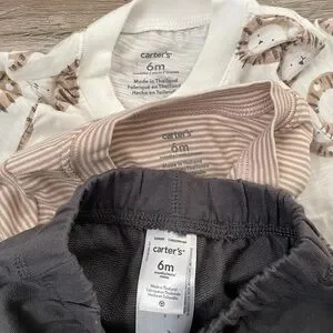 Carter’s 3 piece set: striped bodysuit, short sleeve and shorts. All size 6 months. Nwt