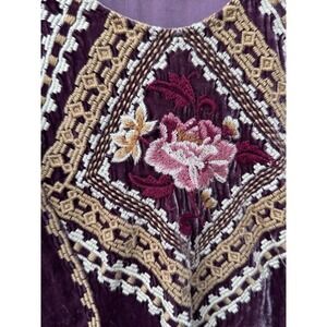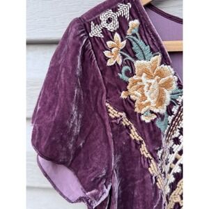 Johnny Was Velvet Blouse Women's XS Tisha High Low Embroidered Top Boho