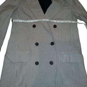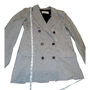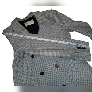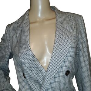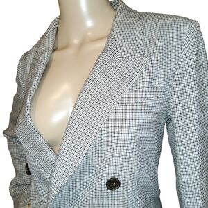 Babaton Samuel Blazer from Aritzia. It is a double-breasted, menswear-inspired blazer typically featuring a plaid, check, or houndstooth pattern woven directly into the fabric.