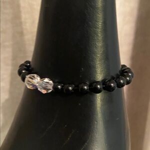 Elegant Black obsidian and Clear Beaded Sparkling Crystal Bracelet