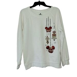 Disney Parks Mickey Mouse Christmas Ornaments Sequin Pullover White Top Size L