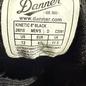 Sturdy black tactical boots. Ideal for rugged use. Secure lace-up design. Features of Men's Danner 8" Kinetic GTX Boots: