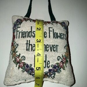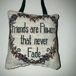 Friends Are Flowers' Tapestry Pillow Door Hanger Floral Heart/Green Back 6"