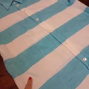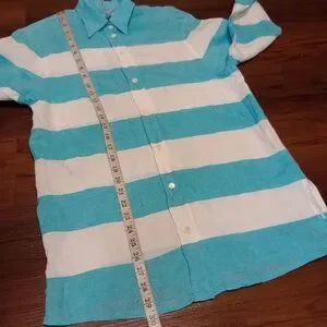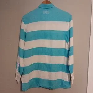 Vintage Escada Sport 100% Linen Long Sleeve Striped Button Down Top Aqua
