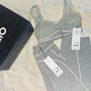 ALO Yoga Women's Gray Bra and Leggings Set