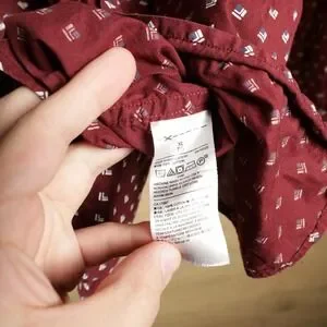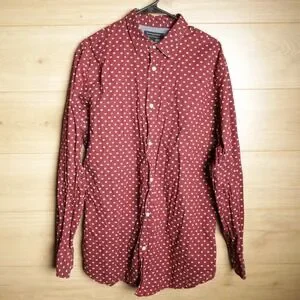 Keywords: banana republic, mens shirt, long sleeve, slim fit, stretch, soft wash, burgundy, geometric print, button down, collared, casual, business casual
