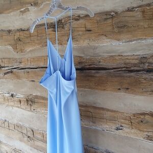 Cable & Gauge Blue V Neck T Back Satin Nightgown Medium