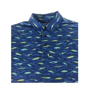 Magellan Outdoors Pro Print Short Sleeve Fishing Polo Shirt Men's Size M Blue