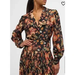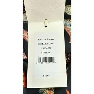 Ulla Johnson Florian Floral-Print Silk Blouse in Hellebore NWT Size 14