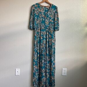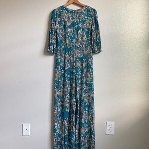 Anthropologie Kachel Teatime Silk Viscose Blend Floral Jumpsuit Wide Leg sz 8