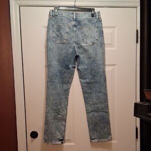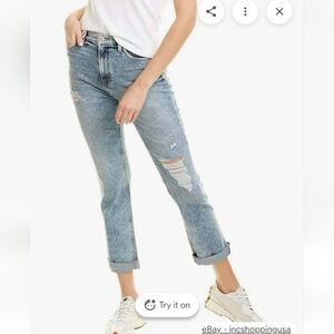 Women's Hudson Holly Straight leg jeans. Distressed look. 5 pocket styling. Button and zipper closure. 1% elastane for light stretch.