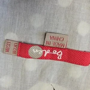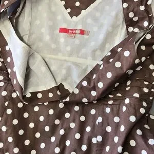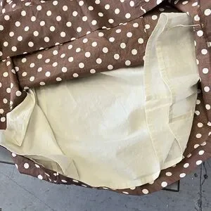 Elegant beige fabric with red accents and polka dots. Ideal for stylish projects.
