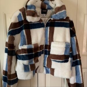 Ci Sono Women's Teddy Jacket - Blue, Brown, and White