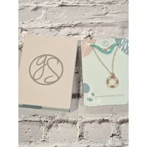Gemma Simone Turquoise Color Necklace, NIB, Gold Tone Chain, Layered, Sun Charm