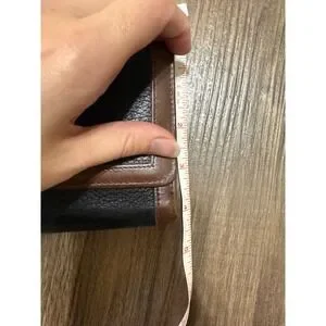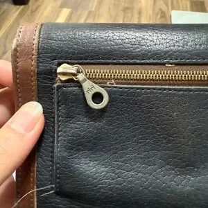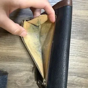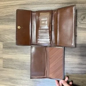 This wallet is in really good condition for its age. The coin area is stretched out, and there are markings from the coins. It appears the zipper pull may have been replaced. The zipper works smoothly. The ID window is tight on both the checkbook and the wallet. The credit card slots are tight as well. The snap closure on the front is secure.