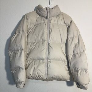 Stay warm and stylish with this cream/off white puffer jacket. Perfect for chilly days.