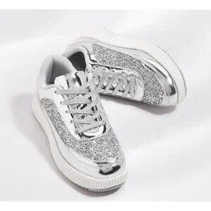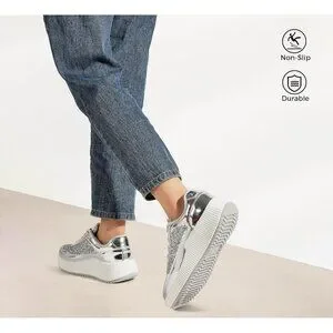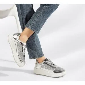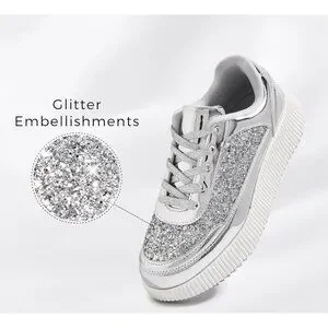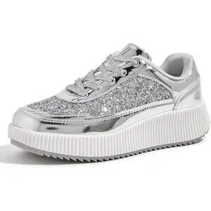 Lucky Step Women's Silver Platform Sneakers Rhinestone Fashion Chunky Shoes