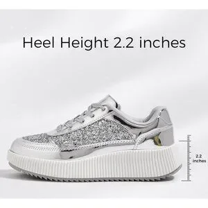Measurements The heel height of chunky sneaker is approximately 2.2 inches, platform heel design is comfortable for walking