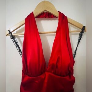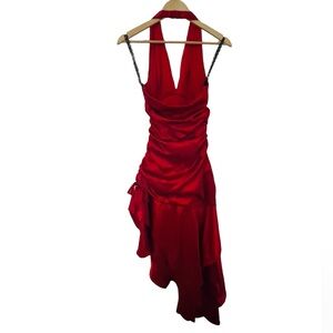 Red Satin Halter Dress - Spanish - Latin - Flamenco - Prom - Grad - 5/6 - NWT