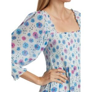 LoveShackFancy Miri Floral Cotton Midi Dress Smocked Tiered Slit Size Small