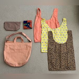 3 standard totes (1 is mesh), big tote, pouch, and horizontal duck bag. Some discontinued prints/styles.