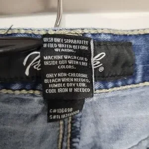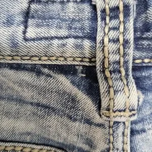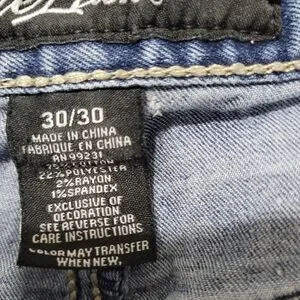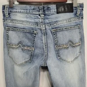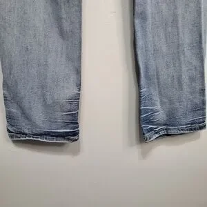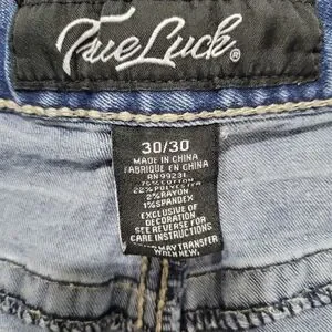 These men's True Luck Miles Straight Distressed Jeans are a size 30/30. They have casual streetwear, grungecore, and almost vintage vibe. These jeans have a minor worn spot by the tag, minor wear throughout, and some flaws in the stitching on the waistband. Please see all of the photos closely.