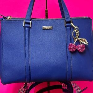 Kate Spade Royal Blue Newberry Ln. Satchel w/Pink Cherry Charm Approx. 15x9x4