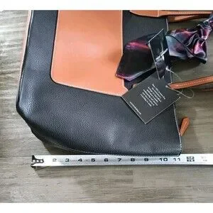London Fog Black & Tan Brown Handbag Shoulder Bag New Vegan Leather