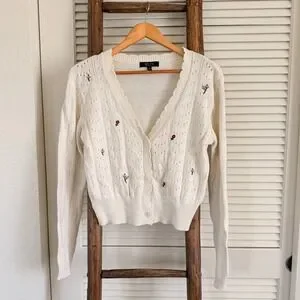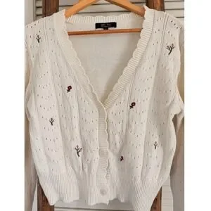 Keywords: White Fox, Cream Cardigan, Floral Cardigan, Embroidered Cardigan, Cropped Cardigan, Cottagecore, Sweater, Womens Cardigan, Spring Cardigan, Casual Cardigan, V Neck Cardigan, Button Front Cardigan