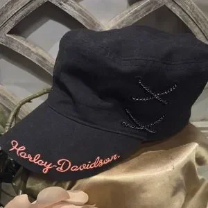 Biker Babe Energy 🏍️ Harley-Davidson Black Cadet Cap Lace Up Chain Detail