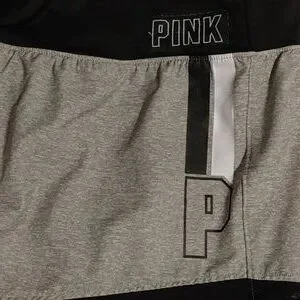 Chic athletic shorts by PINK Victoria's Secret. Features a stylish gray and black design. Perfect for workouts or casual wear.