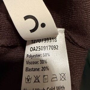 Materials: 50% Polyester, 30% Viscose, 20% Elastane.
