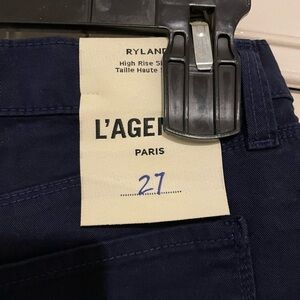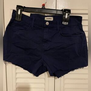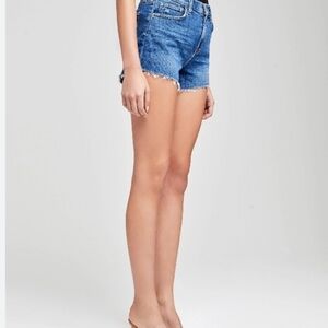 L'AGENCE Ryland H/R Short in Blanc Traditional denim cut-off shorts designed with a contoured high waist and frayed hem that’s angled up to create long, lean legs. Slightly longer in back for sufficient rear coverage in a comfort stretch denim in a white wash.