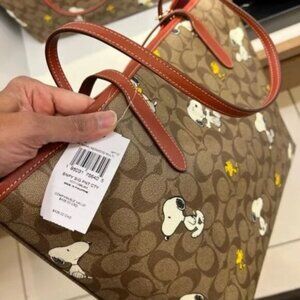 New Coach X Peanuts City Tote In With Snoopy Woodstock