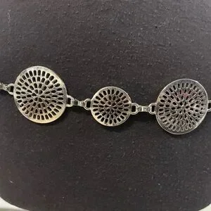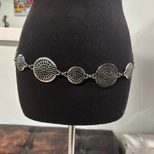 Take your outfit to the next level when you add this cool silver medallion belt to the mix!