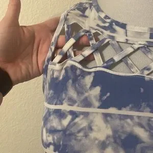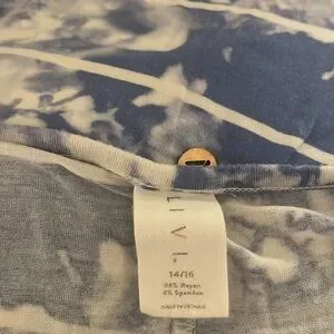 Gently used. This LIVI tank is comfortable and cute. Blue and white tie-dye with front detail.