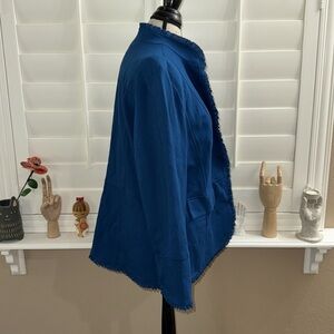 CHICO'S Ruffle Trim Ponte Blazer Jacket Baroque Blue