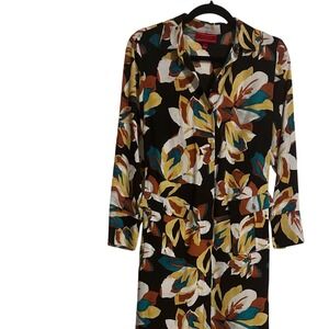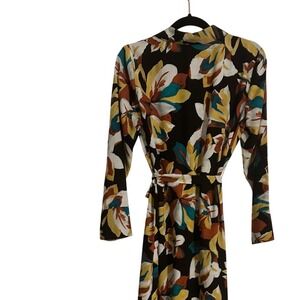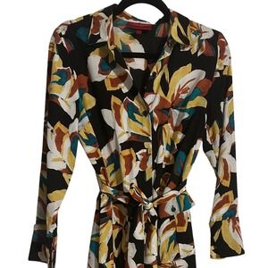 Jennifer Lopez Floral Print Long Sleeve Midi Dress Shirt Dress