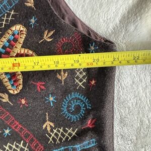 VTG 90's PASTA Brown Wool Blend Whimsy Fairy Floral Embroidered Vest Large