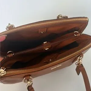 This Coach Christie Satchel (Style F36606) is a timeless, structured handbag crafted in durable crossgrain leather with elegant light gold-tone hardware. Designed for everyday functionality without sacrificing style, this classic silhouette transitions seamlessly from workdays to weekends. The bag features two main zippered compartments for organized storage, along with two additional snap-closure interior compartments to keep essentials secure and easily accessible. Finished with sturdy top handles, this satchel offers versatility and refined practicality.