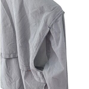 A versatile and functional Orvis button-down shirt, ideal for outdoor adventures or casual wear. This long-sleeved shirt features a subtle gray plaid pattern, adding a touch of understated style. The design incorporates practical elements such as dual chest pockets with button closures, perfect for storing small essentials. With roll-tab sleeves, the shirt offers adaptable comfort in changing conditions, while the back yoke vent provides enhanced breathability. Finished with a mesh lining for added comfort and ventilation, this shirt is a great choice for fishing trips, hiking excursions, or everyday outdoor activities.