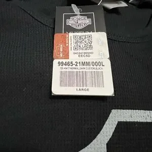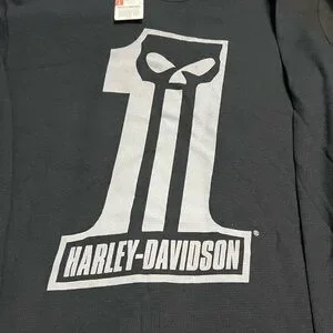 Classic black Harley-Davidson thermal tee. Features iconic branding. Ideal for layering.