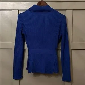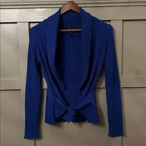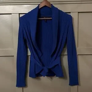 BCBGMaxAzria Cable Knit Cardigan Sweater Shawl Collar Tie Waist Blue Size Small