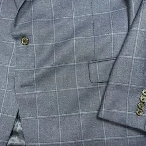 Ralph Ralph Lauren Sport Coat 50L Blue Windowpane Plaid Wool Blend EUC